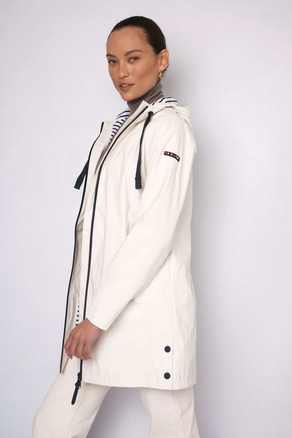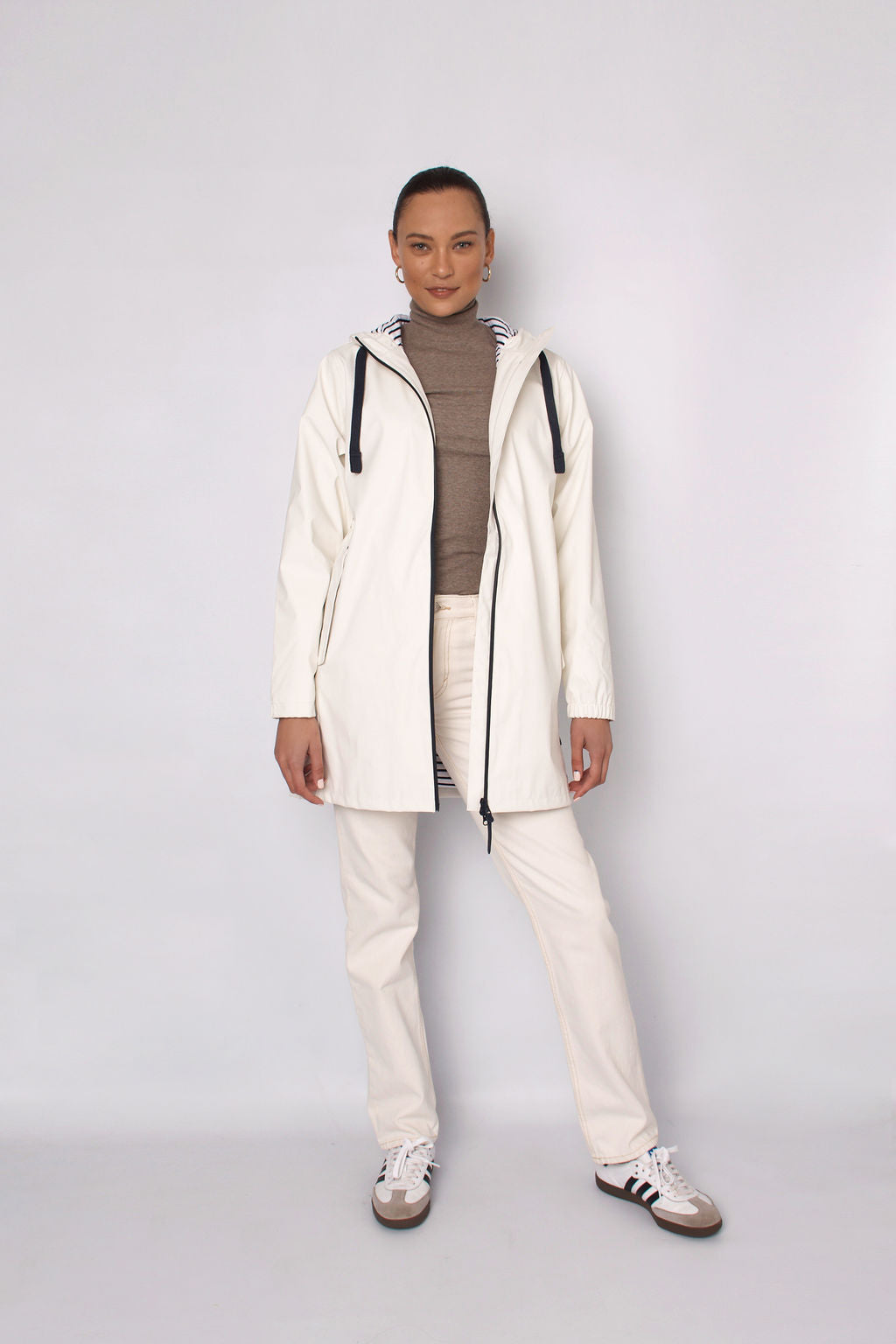 Elasticated cuffs.100% polyurethane outer making this jacket soft, light & breathable. Waterproof. Expert attention to detailing & finishes. Made in Spain.