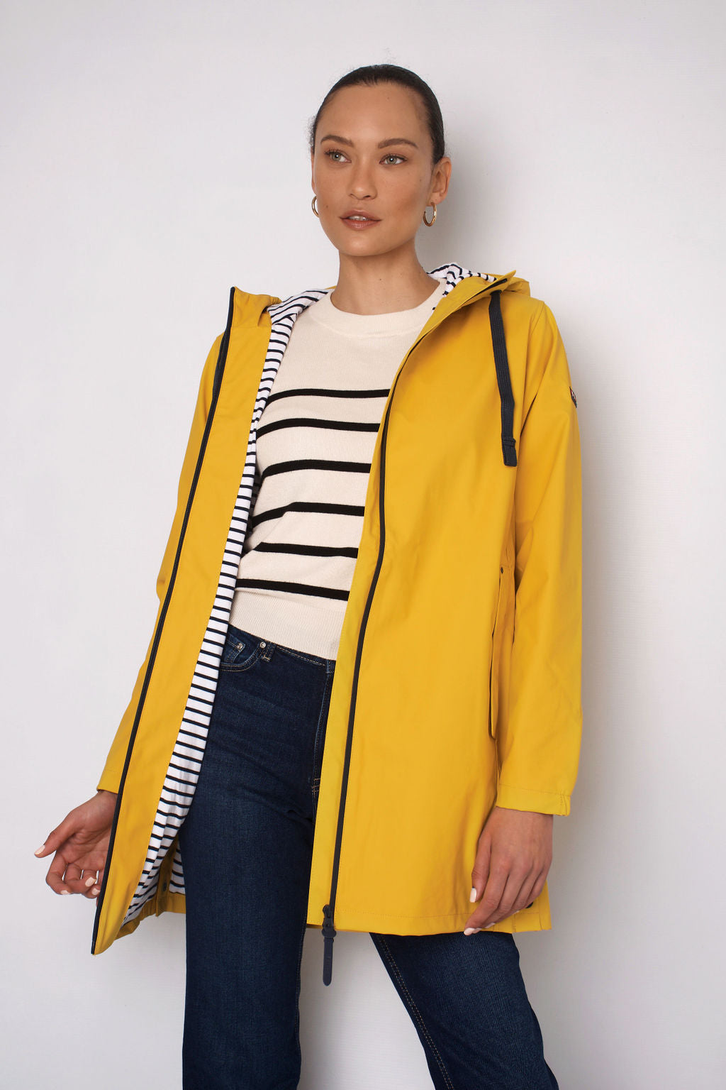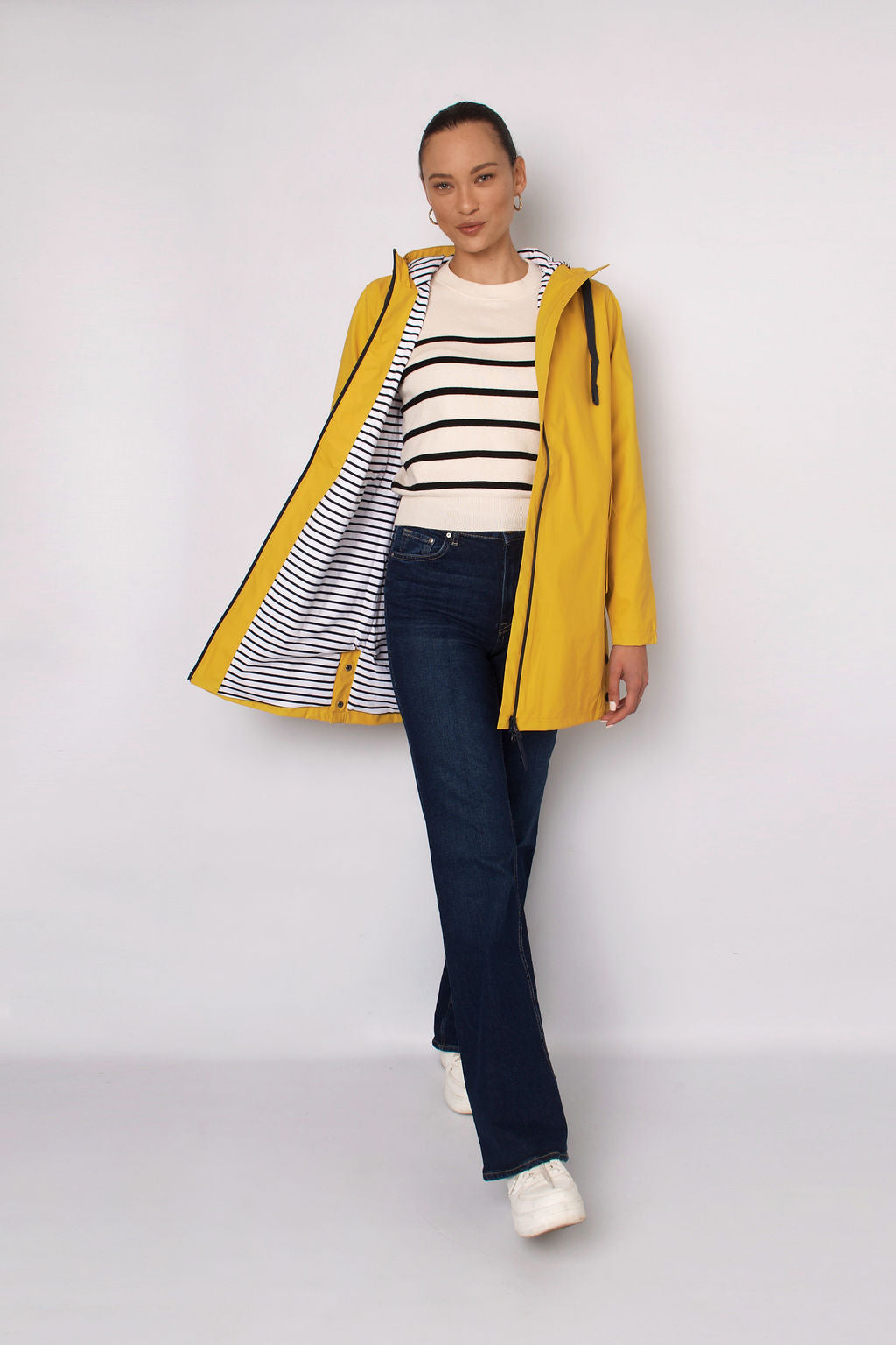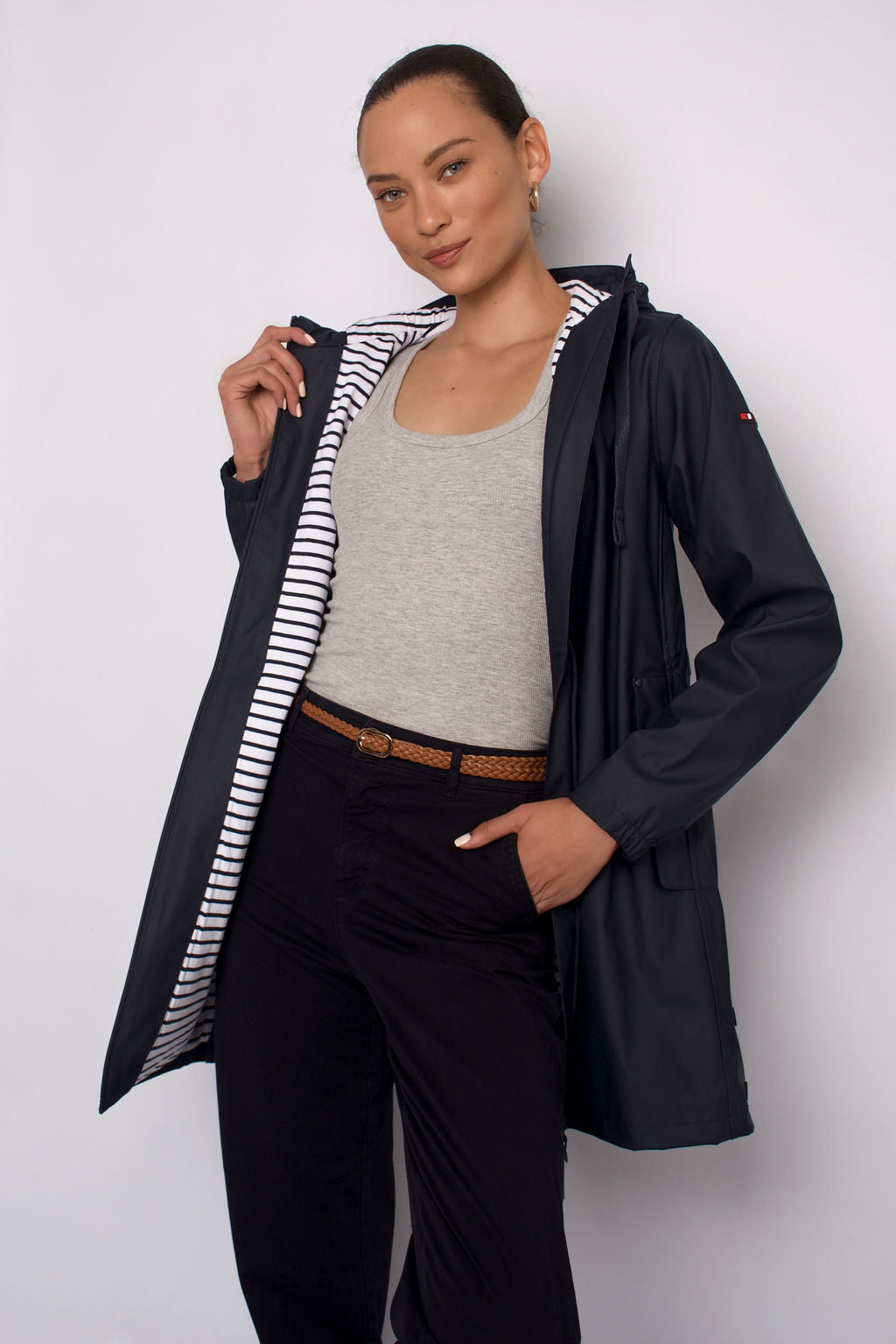 Iconic striped cotton lining.