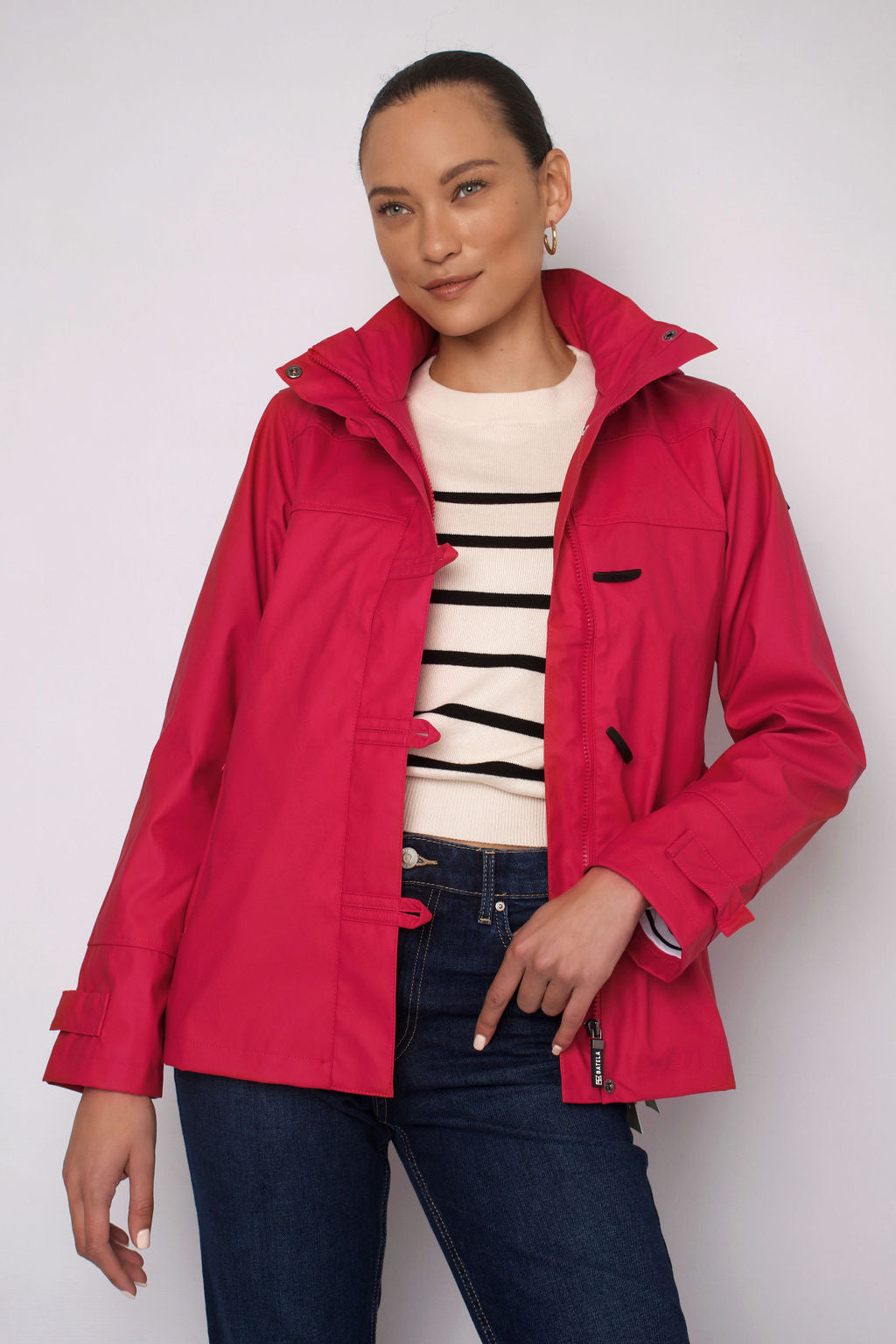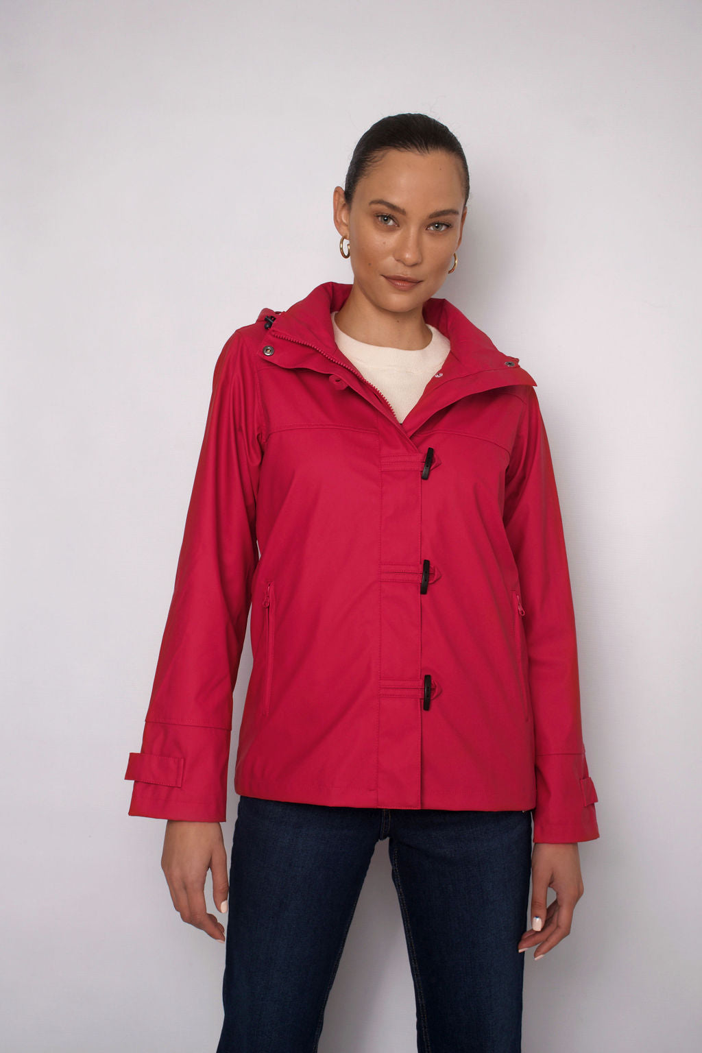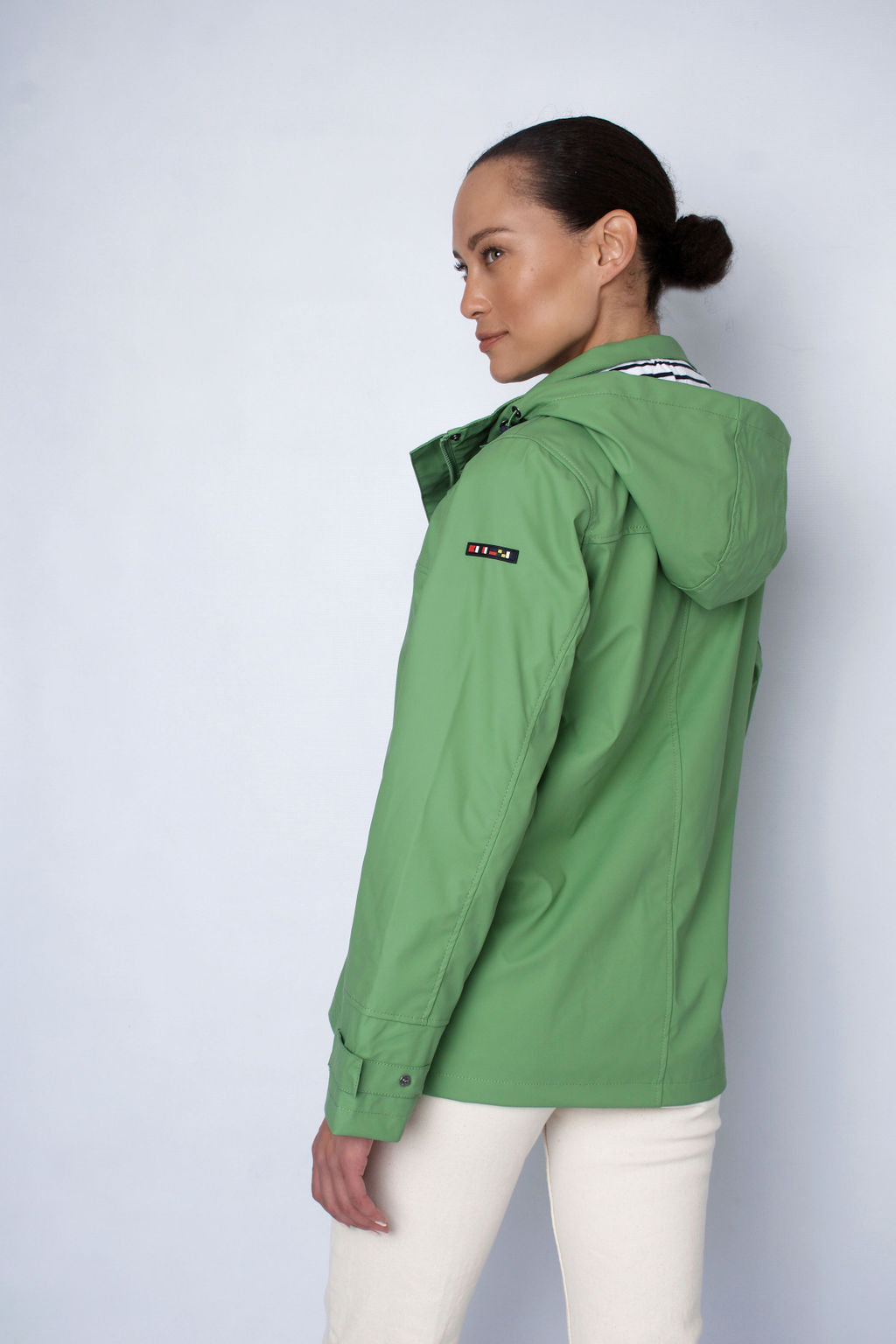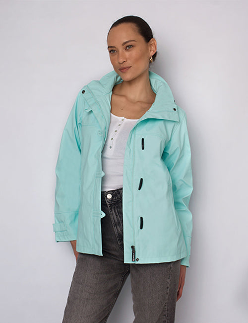 Detachable hood. Adjustable cuffs. 100% polyurethane outer making this jacket soft, light & breathable. Waterproof. Expert attention to detailing & finishes.