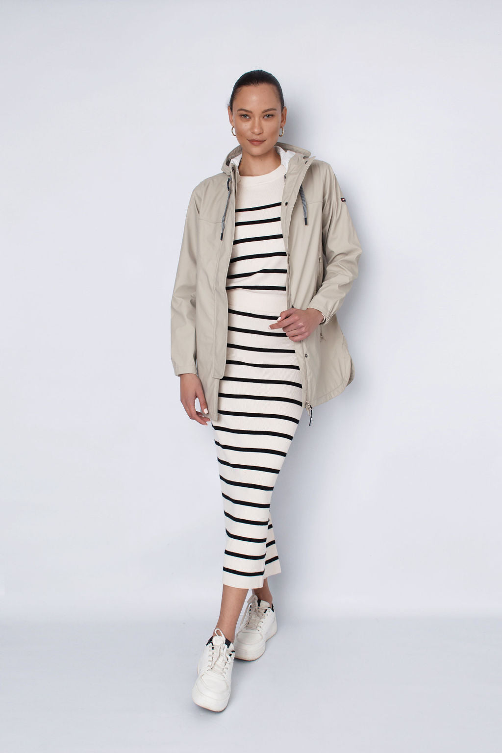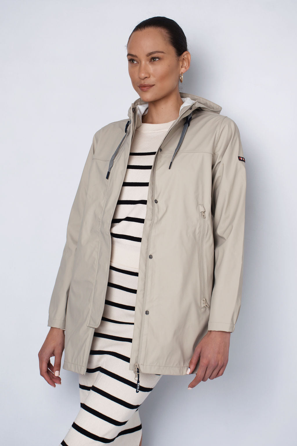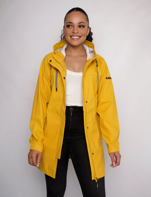 Waterproof polyurethane outer, lightweight jacket. Elasticated cuffs. Materials used make this jacket soft, light & breathable. Heat-sealed. Expert attention to detailing & finishes.